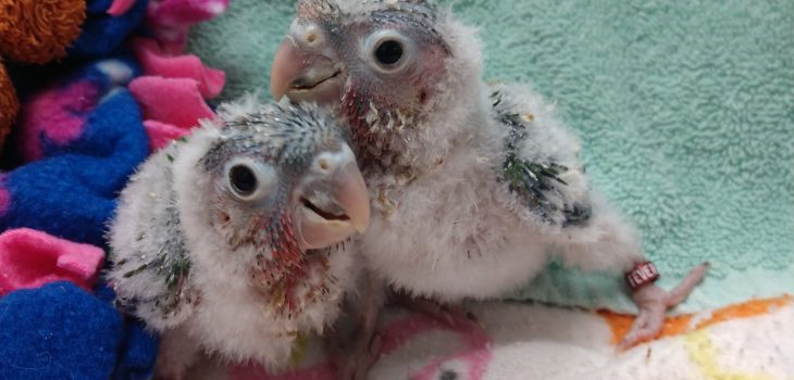 Bird Fever is the Midwest’s premiere place to find exotic pet birds. We specialize in weaned and socialized baby parrots for companionship. All babies are raised here in our own nursery. We do not sell unweaned babies. We do not force babies to wean. The weaning process is different for each species and also for each individual bird. We ask that you be patient throughout your baby’s development. It is in the best interest of your bird that it weans on its own time schedule. All birds are weaned on a pellet diet. However, we feel there is a need for them to eat a variety of foods to ensure a well balanced and interesting diet. This includes but is not limited to: fresh vegetables and fruits, sprouts, quality seed mix, etc. Bird Fever babies experience a nurturing socialization process as they mature and become ready for their new home. We ask that you be part of that process by coming into the store to visit your baby as often as possible. For first time bird owners, this is a great time for us to educate you on bird care and handling. Our staff is always here to offer assistance as your baby grows and matures.